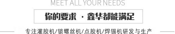鑫華首頁  |  灌膠機系列  |  鎖螺絲機系列  |  點膠機系列  |  鑫華產(chǎn)品中心  |  視頻中心  |  新聞資訊  |  關于鑫華  |  聯(lián)系鑫華